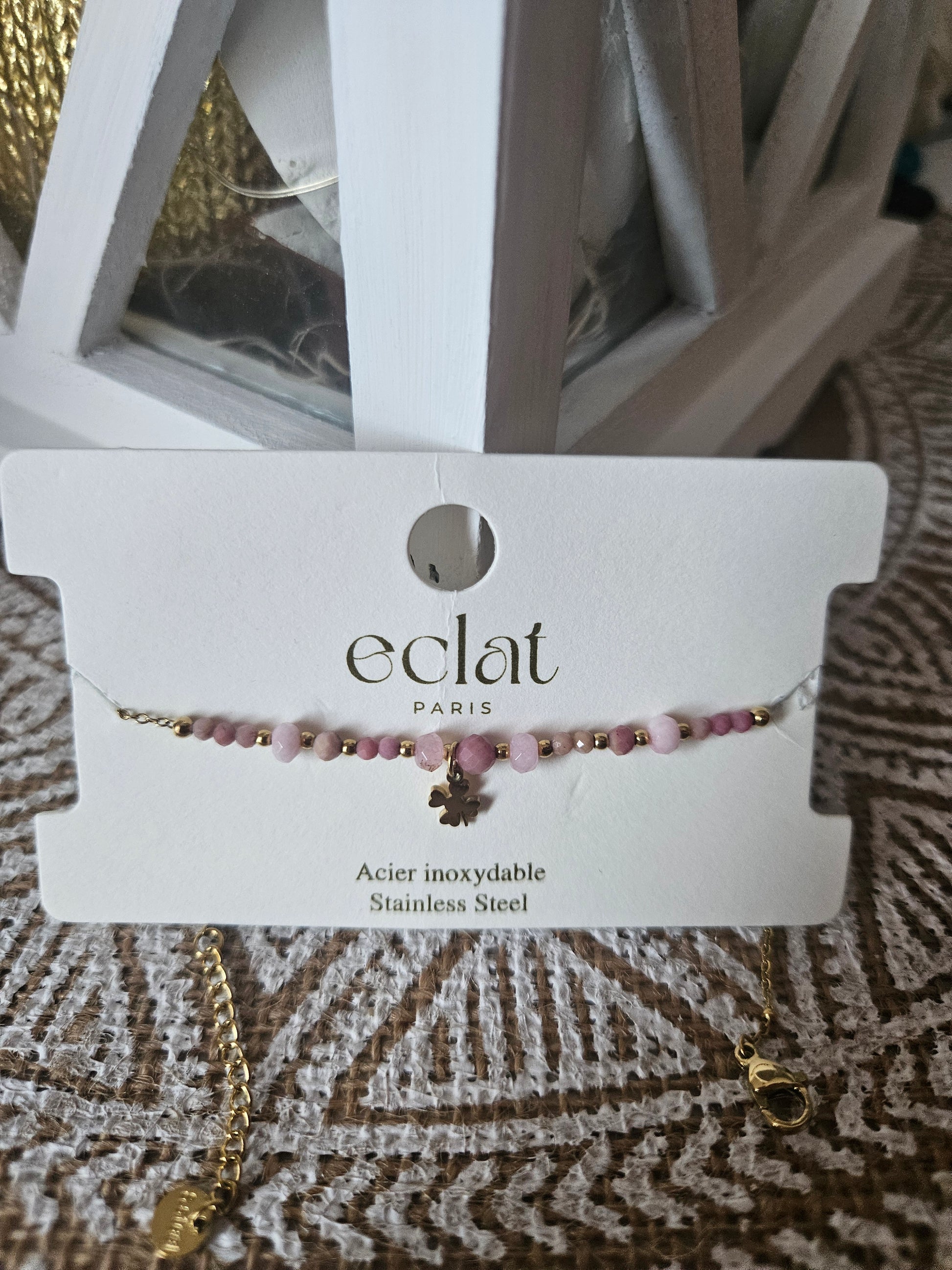 Bracelet perle rose trèfle
