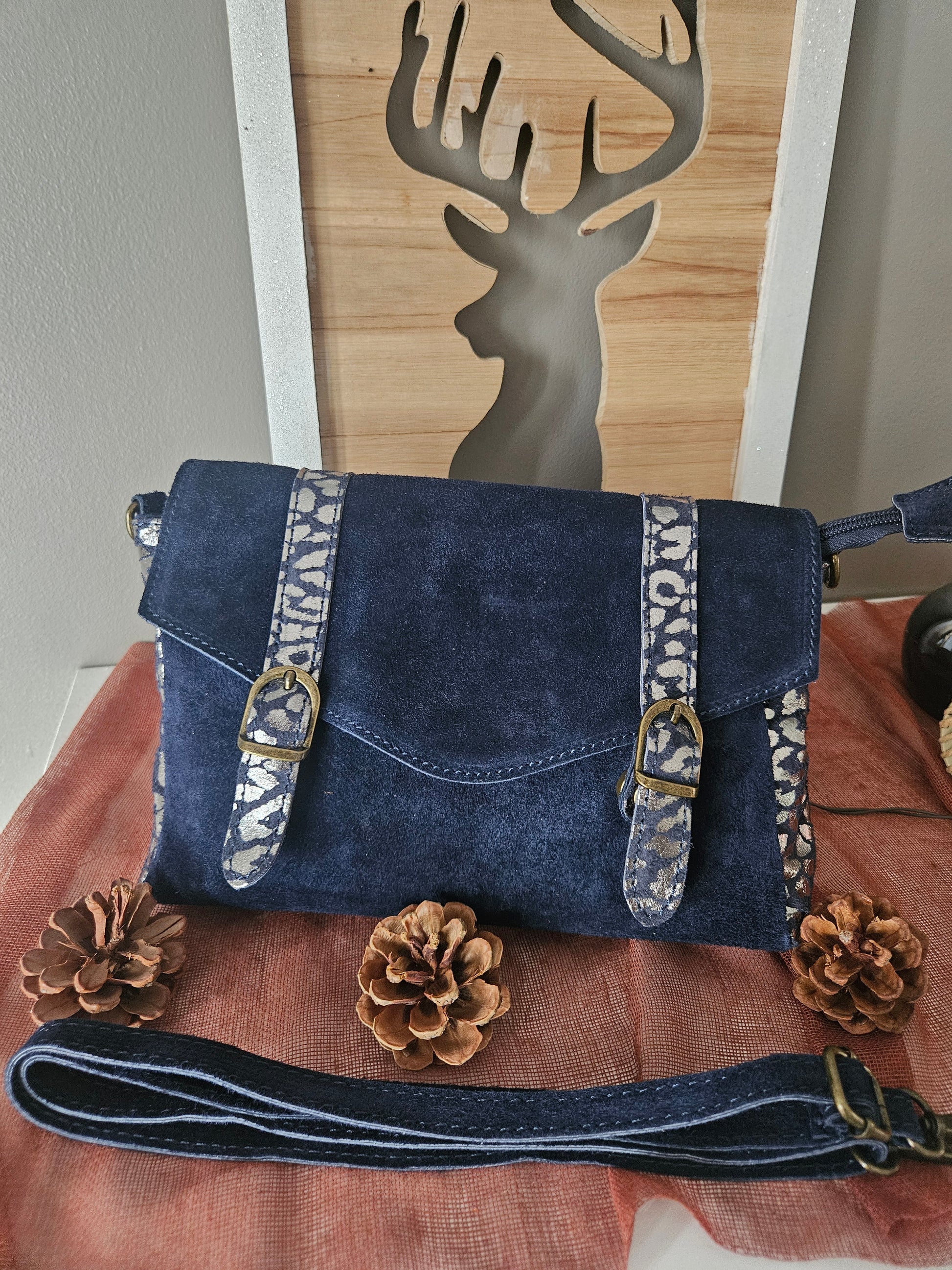 Sac bandoulière marine et léopard